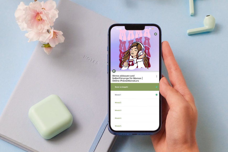 Mama Selfcare bekommst du endlich Raum für dich – mit einem Kurs voller effektiver Übungen für deinen Alltag. Du lernst mit Stress umzugehen, auf deine Bedürfnisse zu achten, findest neue Energie und innere Ruhe. Das Hamsterrad der Mutterschaft endet hier.