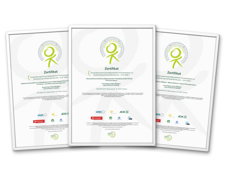 Alle unsere Online-Kurse entsprechen dem Deutschen Leitfaden Prävention, sind von der Zentralen Prüfstelle für Prävention zertifiziert, von gesetzlichen Krankenkassen erstattungsfähig und ihre Wirksamkeit ist wissenschaftlich belegt.